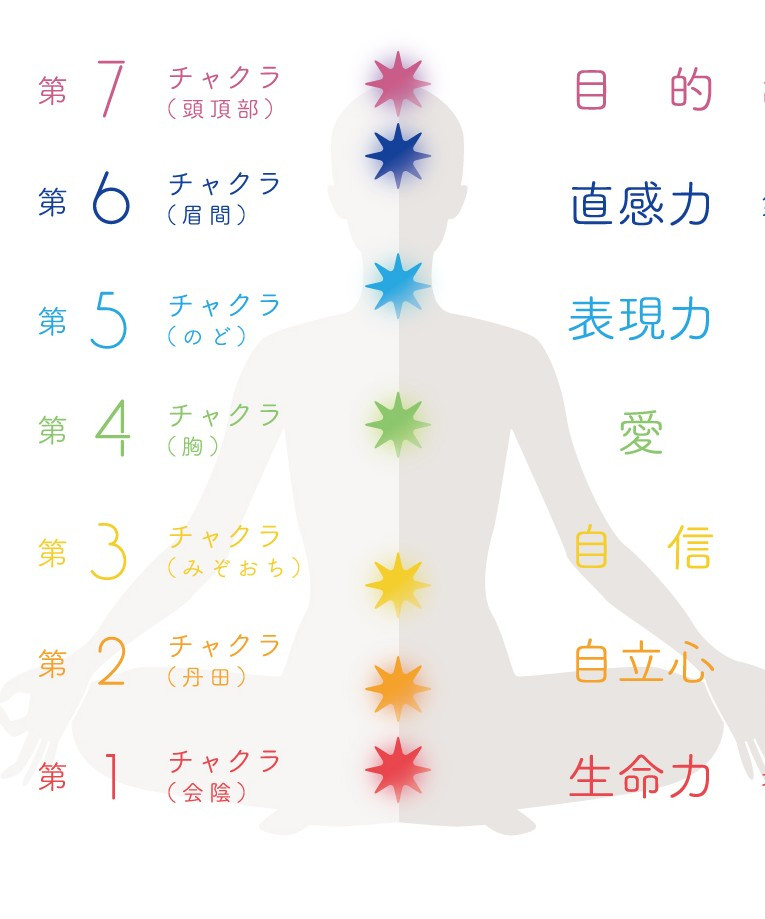 このコースでは『エーテル体』などのオーラと『7か所のチャクラ』『全身の経絡』など、生命力の要となる箇所を調整し、整えていきます。